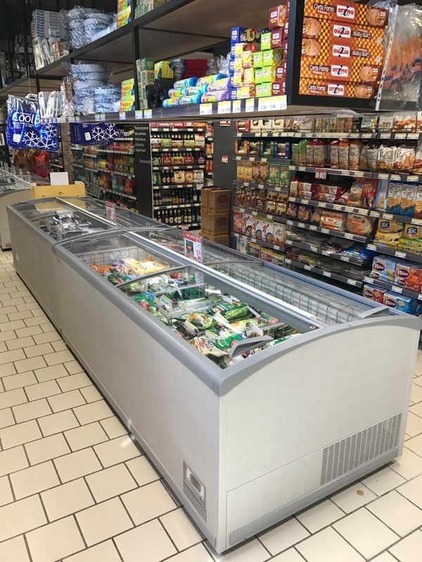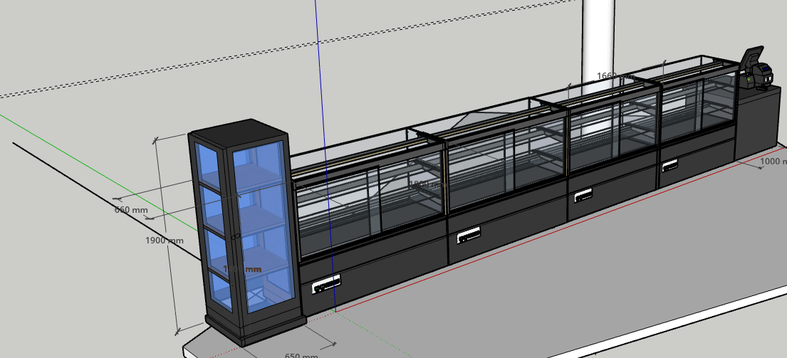Comptoirs vitrine réfrigérés à vitre droite 90°, avec réserve - NOIR RO20/B5-R2