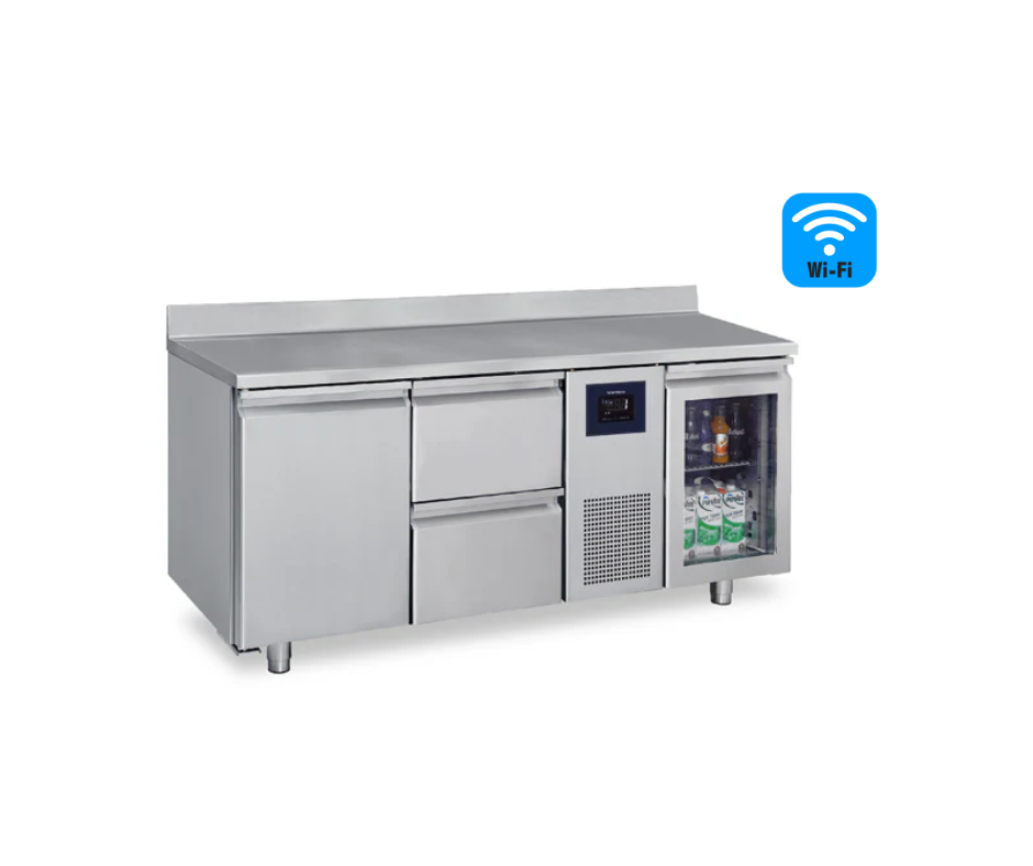 Table réfrigérée avec 3 portes GN 1/1 et dosseret, -2°/+8°C - WiFi