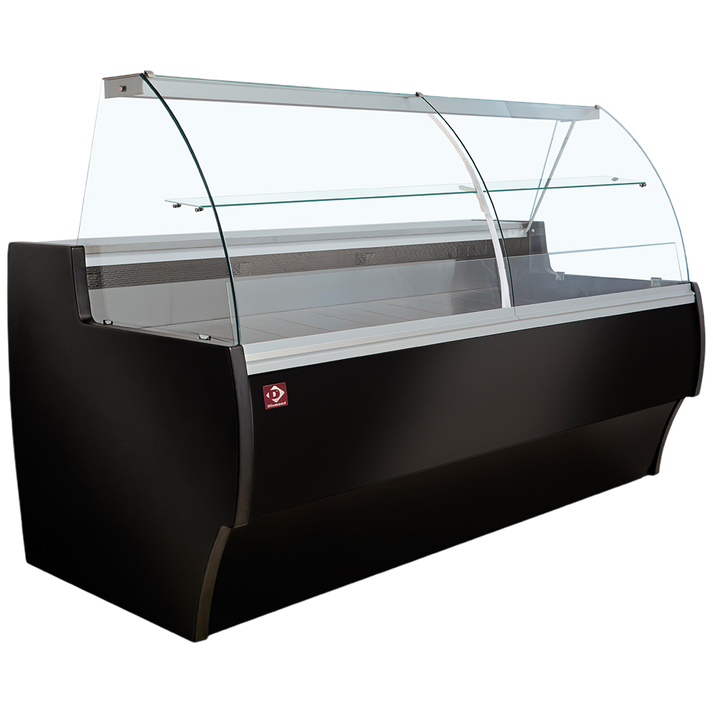 Comptoir vitrine réfrigéré à vitre bombée, ventilé, avec réserve - NOIR MA25/B5-R2V