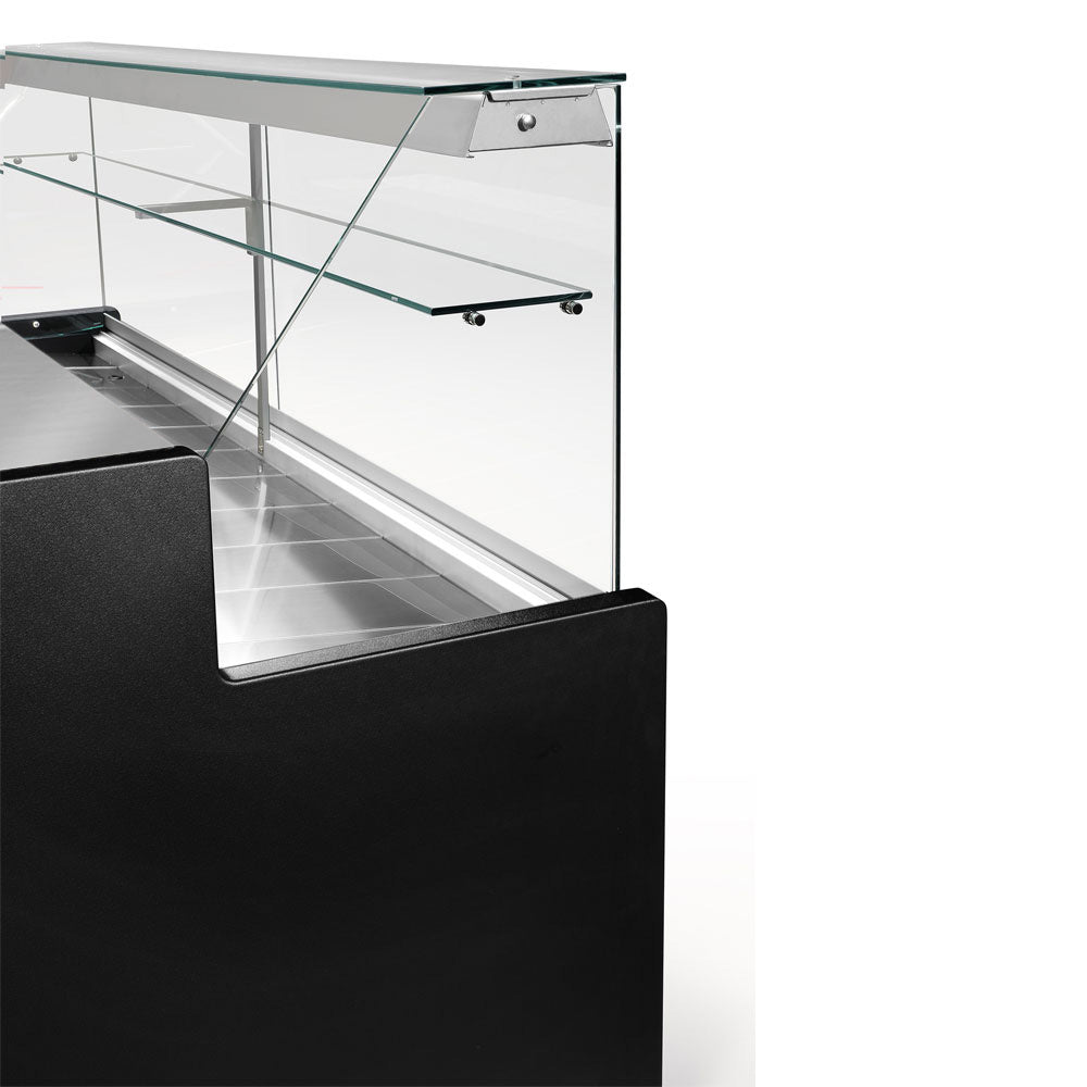 Comptoirs vitrine réfrigérés à vitre droite 90°, avec réserve - NOIR RO20/B5-R2