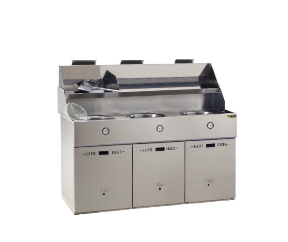 Friteuse gaz - Type Défi - 3 cuves avec aspiration Version équipée