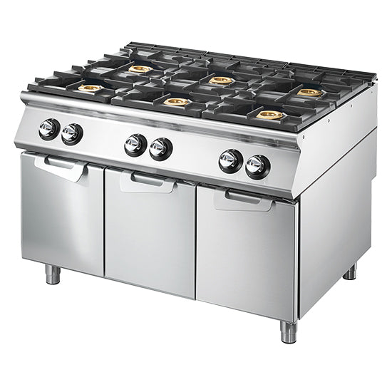 Cuisinière à gaz à 6 brûleurs sur soubassement avec portes, plateau de travail embouti – VS90120PCGSP