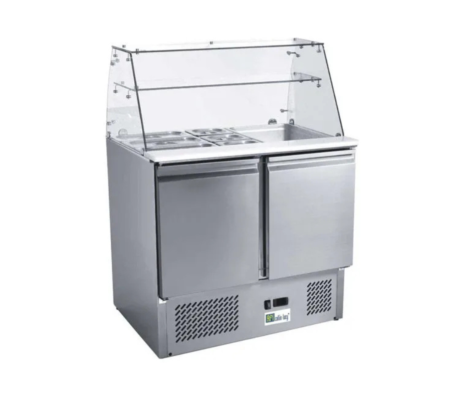 Saladette réfrigérée 2 portes pour bac gn 1/1 avec verre bombé