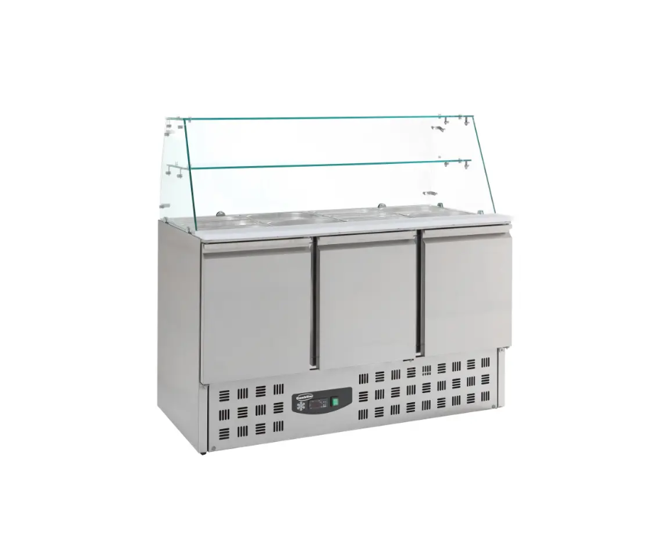 Saladette réfrigérée 3 portes pour bac gn 1/1 avec verre bombé tropicalisé