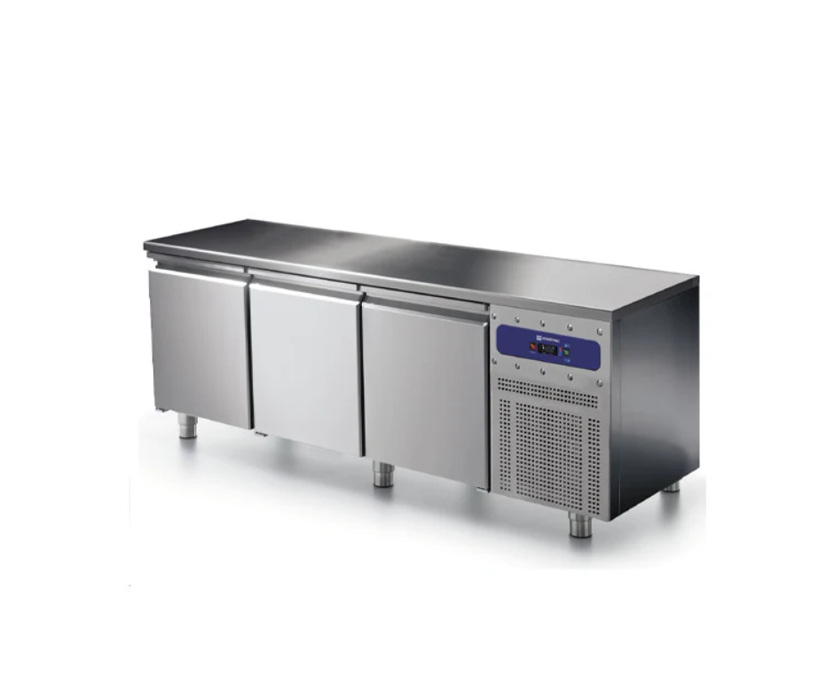 Cette table réfrigérée 3 portes est idéale pour les cuisines professionnelles recherchant une solution efficace, durable et économe en énergie.